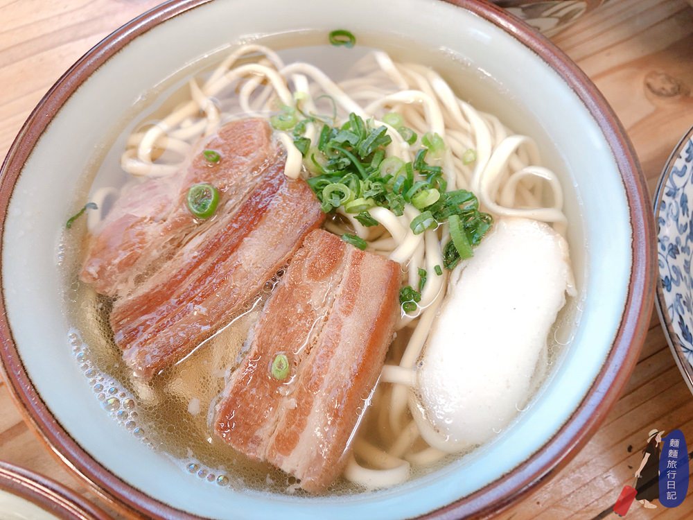 湯頭看起來非常清澈,原本以為會很清淡、沒什麼味道,沒想到這湯頭看起來簡單喝起來卻不單純,用傳統的柴魚湯頭,喝起來鮮甜清爽回韻,非常好喝,很純粹的好滋味,喝一整碗也不會有負擔、口渴。