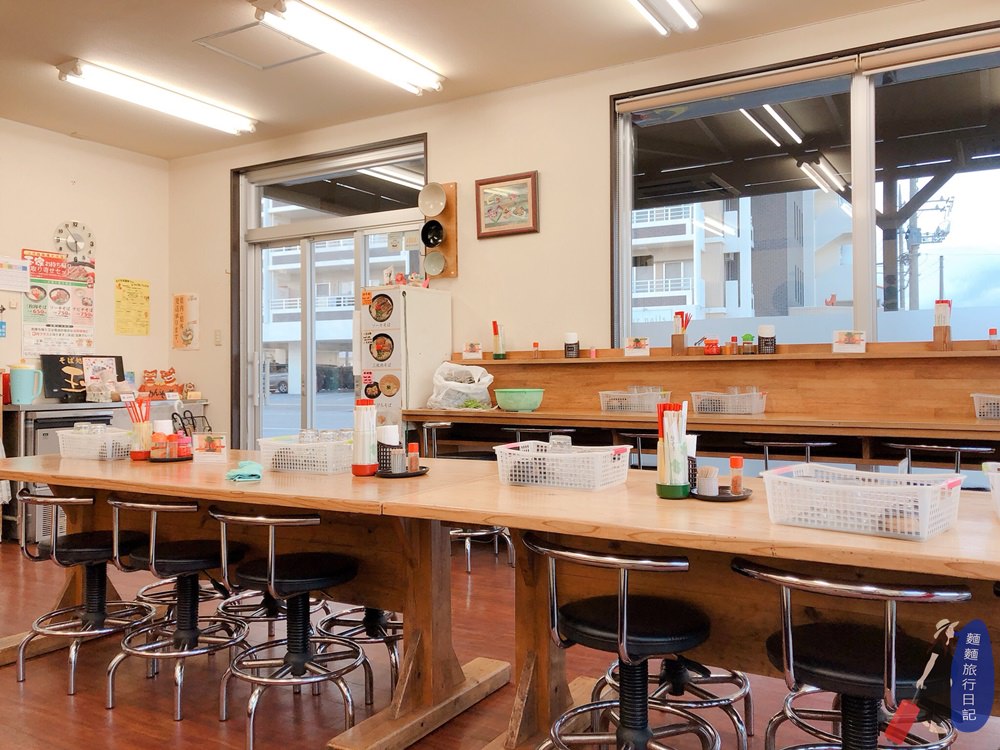 左邊就是坐位區,餐廳裡有分成三區的坐位區,一進到餐廳裡面,左邊第一排有一整排的吧台單人坐位區、中間則是幾張長桌拼在一起的桌椅座位區、然後最後面是要脫鞋的和室塌塌米區。