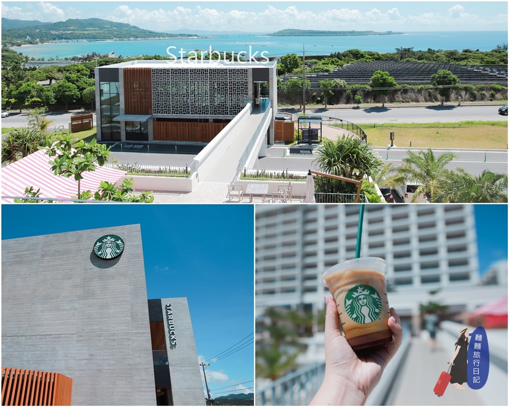 商場內還有沖繩北部第一間Starbucks,飯店旁邊有一個走道可以直接走到這家Starbucks,真方便!村長也去買一小杯來解癮~這間Starbucks外觀是灰色的,搭配沖繩限定天藍色的天空,真的超級漂亮!