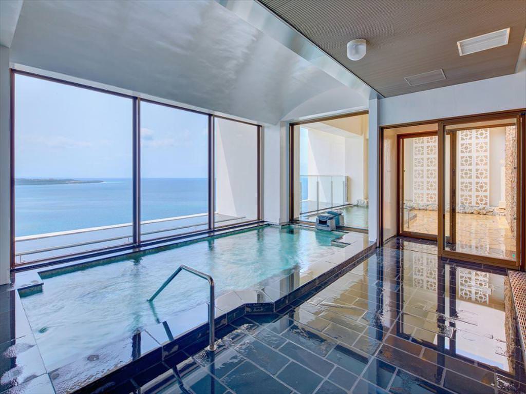 在飯店頂樓還有一個景觀大浴池,可以眺望一望無際的大海,泡在大浴池裡看著外面的美景,村長有種此生足矣的滿足感,哈哈哈~這也太容易滿足了吧!有來過日本的人應該知道,進浴池前要先洗澡,大浴池洗澡間裡提供的備品居然是一整套雪肌精欸~欸斗~這也太豪邁了吧!既然飯店都這麼誠心誠意,那村長就心領每天都來浴池報到!好好保養滋潤一下,每天曬後的肌膚~