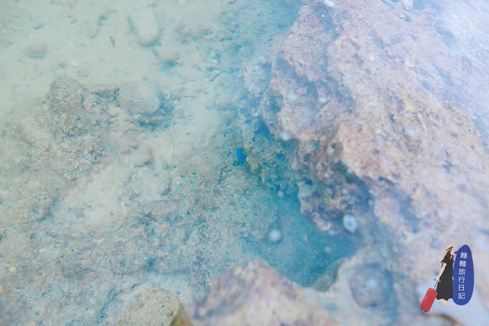 其實海水超級清澈,根本不用浮潛只要站在岸邊就可以看到很多熱帶魚在水裡游啊游~這裡的魚種類比較多,而且顏色都好鮮豔漂亮!
