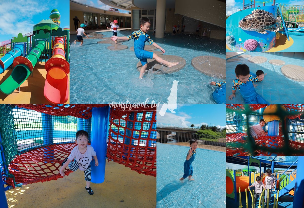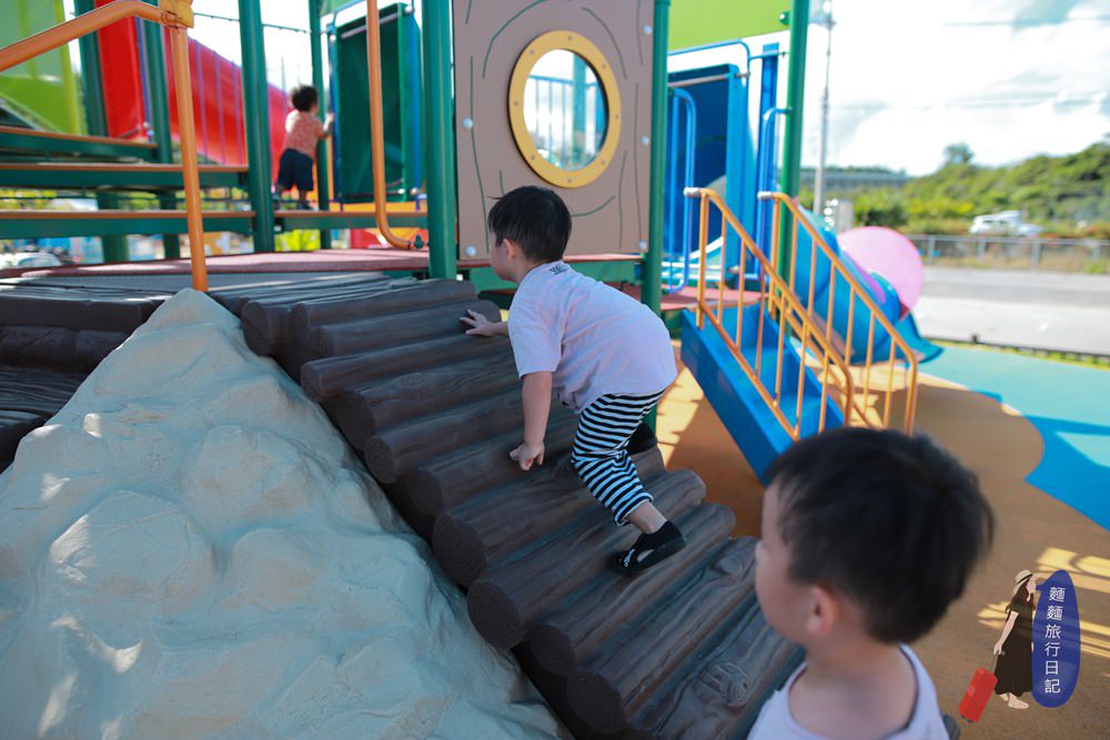 我們在沖繩的最後一天,因為飛機是很晚的班機,晚上七點多~但是飯店早上11點就要退房啦!距離搭機前還有很多時間,沖繩有很多親子樂園,就連最一般的公園都有多溜滑梯,根本是溜小孩的天!堂!於是原本心裡打的如意算盤是,隨便找一個公園打發波仔跟樂樂,沒想到看到有村民在粉絲團留言說可以去道の駅宜野座水陸新樂園!!!