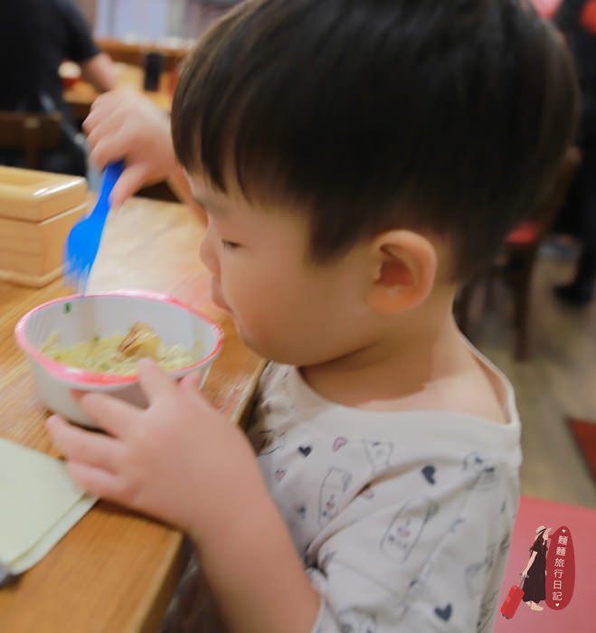 我最喜歡帶波仔跟樂樂來吃拉麵,因為只要裝好麵條,他們就會乖乖的吃光光~~~湯麵真的很適合小朋友吃,樂樂吃的時候大概說了一百次 媽麻~這個好~好~吃~喔~~~(尾音上揚180度) 無限循環 跳針 不誇張~