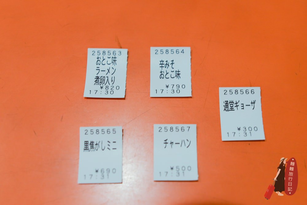 點好餐點之後,一樣會跑餐點單出來~要記得拿嘿!然後服務生就會帶位入座,老樣子點了三碗不同口味的拉麵、煎餃跟炒飯,哈哈哈~
