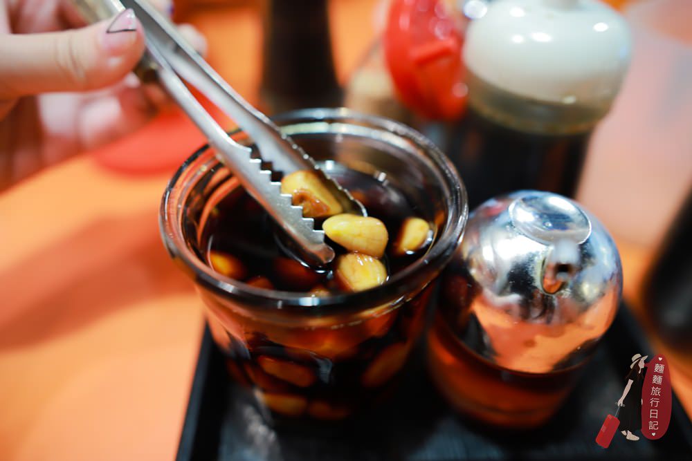 桌上有放一些調味料,最特別的是這罐醃蒜頭,是整顆的生蒜泡在醬油做的Sauce裡,大猴看到這罐整個人都瘋了!吃好吃!愛大蒜如命的大猴讚不絕口,拜託愛吃蒜的人來通堂一定要吃!!!