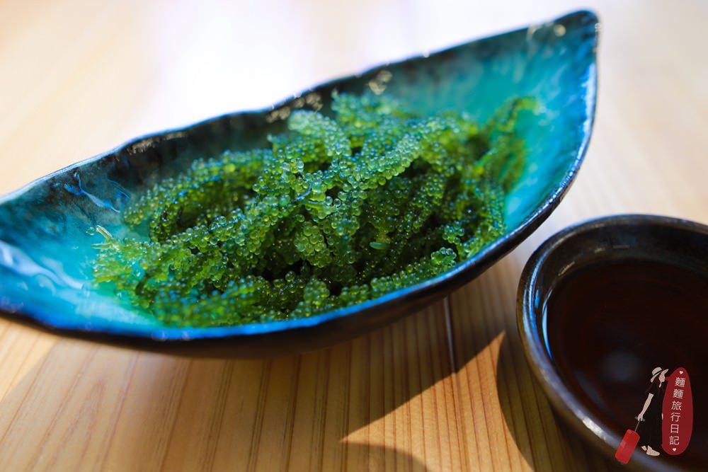 後來上網查才知道這是日本沖繩特產海蘊 (褐藻),是一種類似髮菜的褐色海藻,主要產於日本沖繩縣一帶的珊瑚礁,只有在四季清澈完全未受污染水域才能生長的海藻,原來這麼珍貴,我真是不識貨啊!