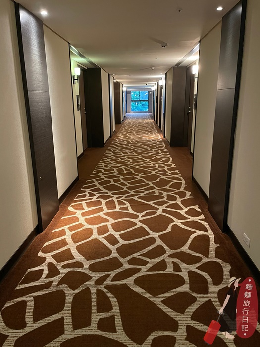 酒店客房走廊是舖地毯,這長長的走廊搭配這個地毯花紋……好像長頸鹿長長的脖子!