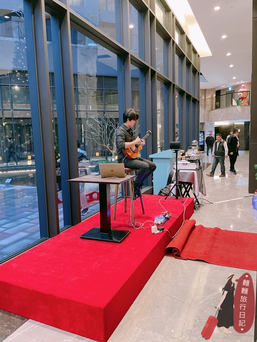 聖誕樹旁邊還有樂器演奏表演,是歡快的節慶氣氛~