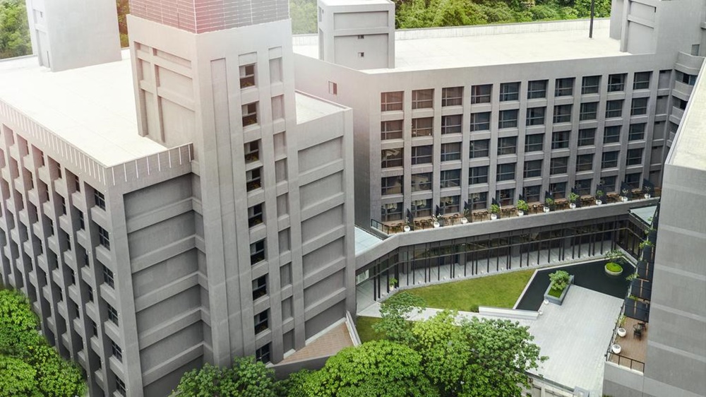 白金花園酒店是三棟建築物組合而成,中間剛好圍成一個三角庭園。