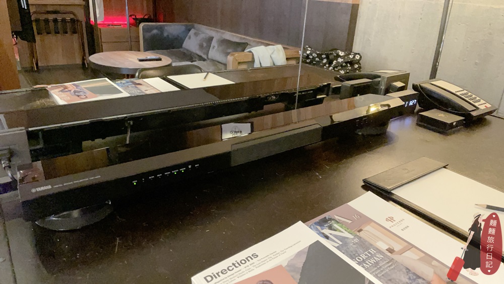 桌上放著是可以連手機、電腦的播放音樂的Soundbar~