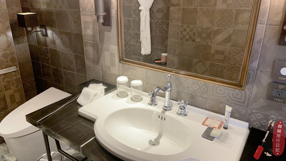 洗手台是一邊轉冷水一邊轉熱水自己調整水溫的復古設計。