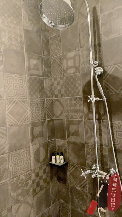 衛浴空間的最後則是乾濕分離的淋浴間,水龍頭一樣是冷熱水分開轉的復古淋浴蓮蓬頭,雖然花灑很大但沒有很好洗(笑)~