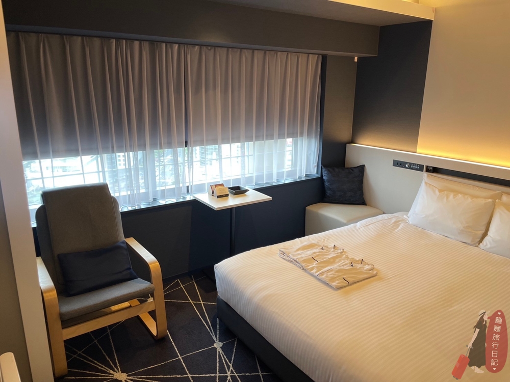 雷姆精品神戶三宮飯店只有雙人房,我們一家四口訂2間雙人房,一大一小配著睡,房型真的滿小的。