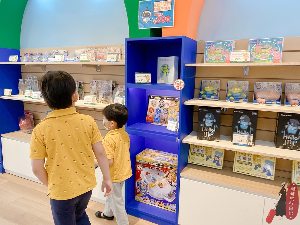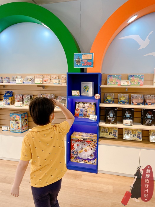 波仔跟樂樂馬上就迷失在機器人商品裡,但是今天的觀光工廠門票加上DIY課程費已經花了太多錢,就讓他們逛一下過個癮(媽媽很壞)。