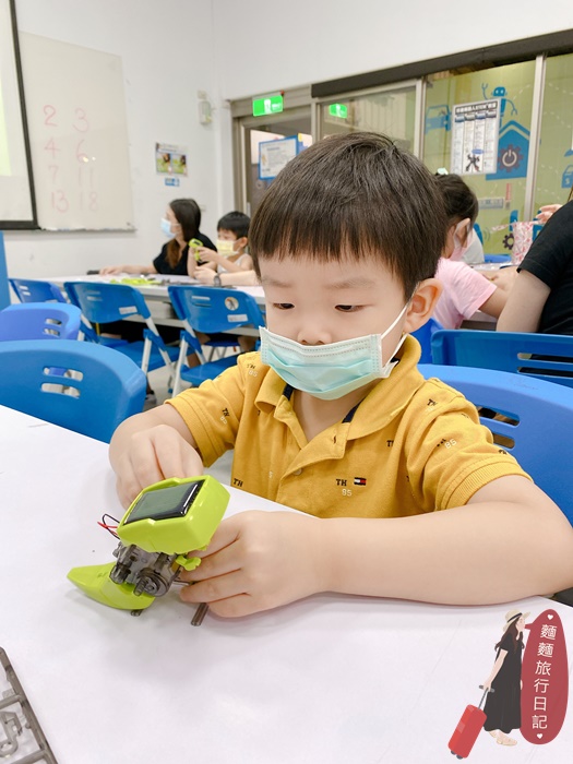 ①太陽能小恐龍:此組材料包可變換四種造型,可以組裝成恐龍、鑽地車、獨角仙,還能搖身一變成為機器人,不需裝電池就可以利用太陽能板發電囉!