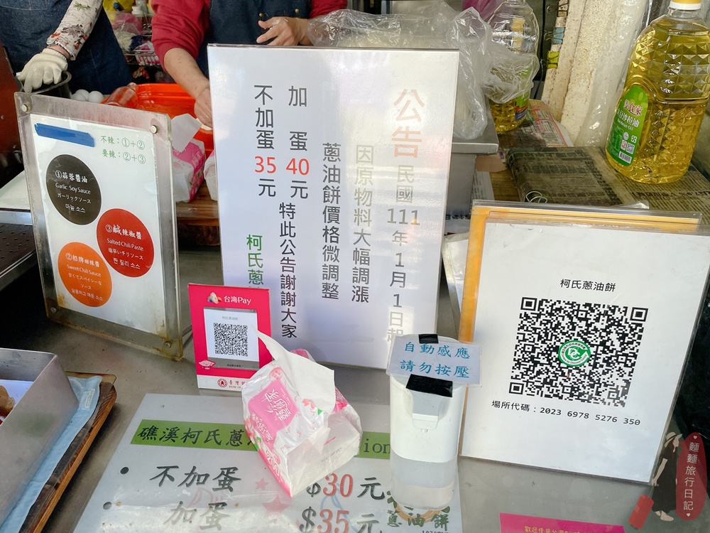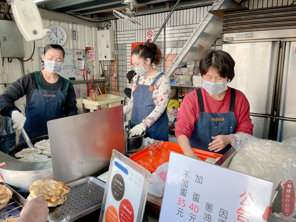 柯氏蔥油餅店面小小的,蔥油餅分成加蛋跟不加蛋,111年漲價加蛋是$35、不加蛋是$40元。