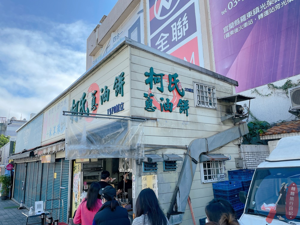 宜蘭礁溪柯氏蔥油餅就在礁溪火車站附近,柯氏蔥油餅店前面停了台創業開的貨車,1970年開始賣蔥餅到現在,真的是歷史悠久!人真的好多啊啊啊~宜蘭天氣超好心情也真的飛起來,路過柯氏蔥油餅,來跟風一下!你們看看我前面一堆排隊的人潮!