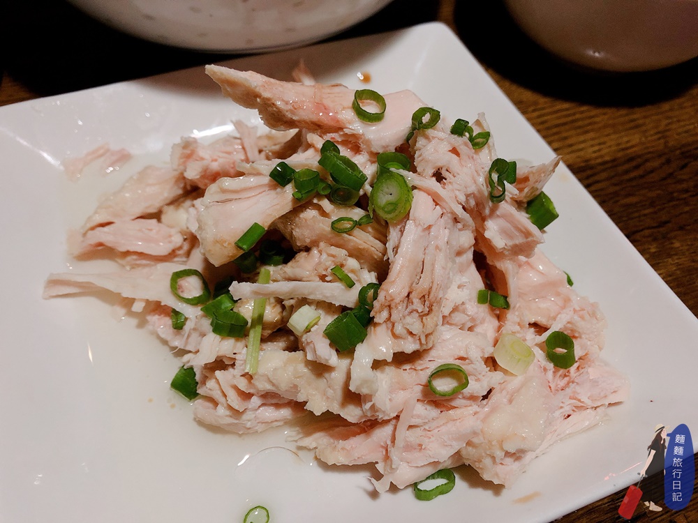 小菜還點了蔥油雞,我原本以為是那種剁一大塊一大塊有骨頭的白斬雞,上面在淋上蔥油,結果居然是這種剝好的雞絲~~~蔥油很香,但是雞肉少少的!