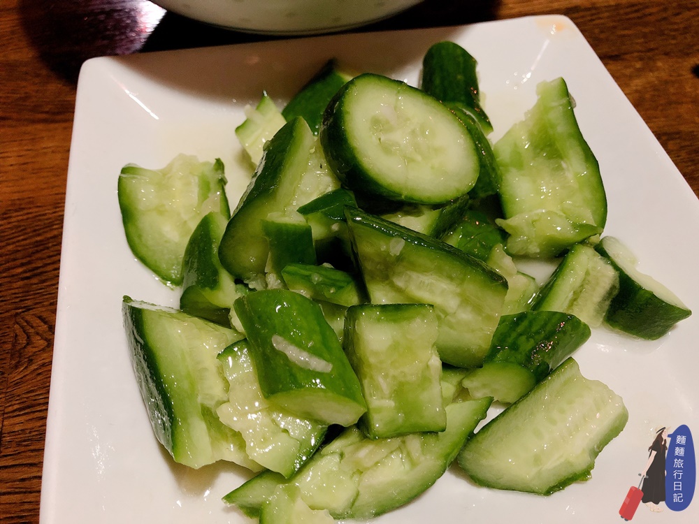 我還是很保守的點菜,怕點了沒吃過的波仔跟樂樂不買單,涼菜點了台灣麵店、小吃店也很常見的涼拌小黃瓜,吃起來很清爽,沒啥大問題。
