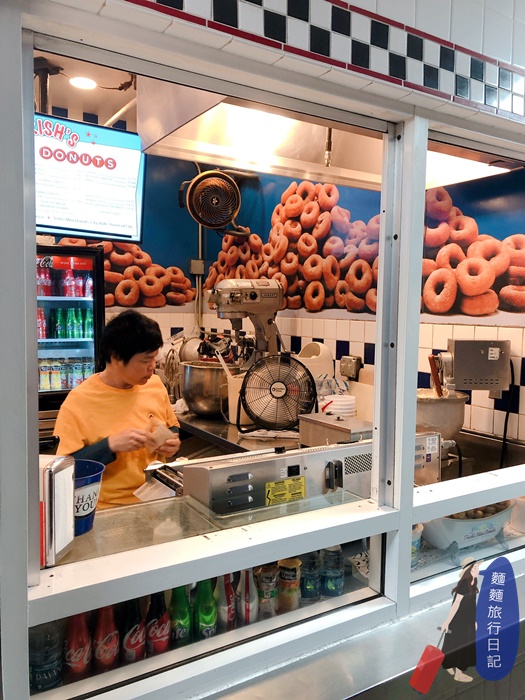 這個甜甜圈是現點現炸,酥炸過後、灑滿糖粉,超級爆炸好吃是我吃過史上最好吃的甜甜圈了,必買啊,就當作是波仔跟樂樂的飯後甜點囉~~~