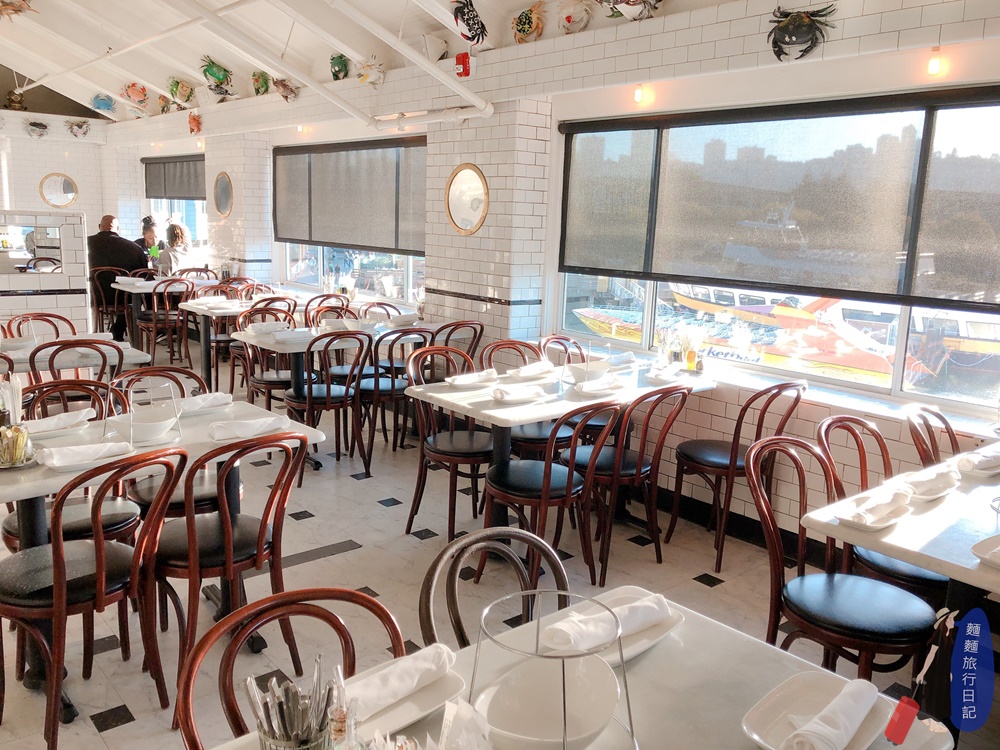 整間餐廳以白色為主,用了很多螃蟹作為裝飾,玻璃窗可以看見大海外,陽光還可以直接灑進來,超級明亮舒服,我們是傍晚來用餐,天還亮著呢!