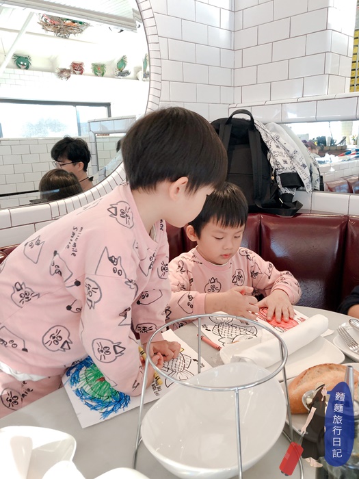 波仔跟樂樂的是兒童菜單,等菜的過程中他們正忙著幫螃蟹跟魚上色!