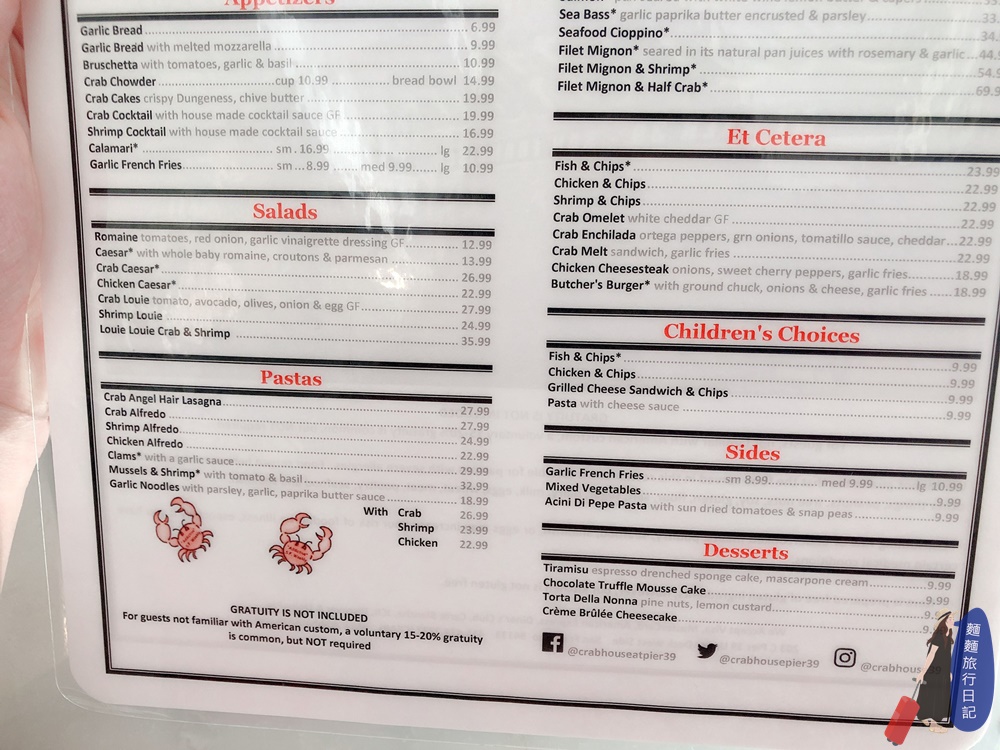 有中文菜單呢~~~提醒大家美國的份量都滿大的,單人份可以兩人分食,如果菜單有特別標註2人份,那餐點的份量應該可以3~4人一起吃。