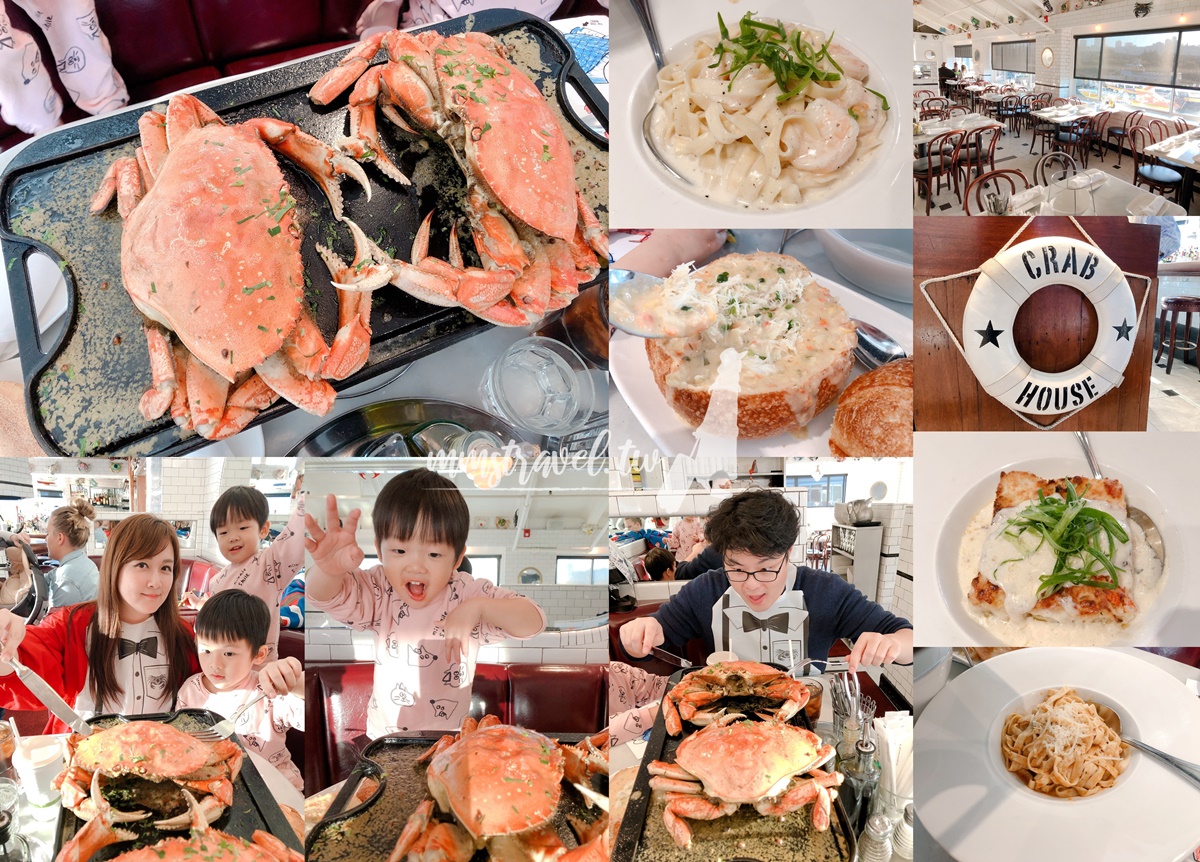 Crab House at Pier 39螃蟹屋在舊金山漁人碼頭-39號碼頭2樓,以海鮮為主的料理,熱門必點當然就是美國才有的Dungeness 首長黃道蟹,除了各式各樣的海鮮料理之外,這裡也有來漁人碼頭必吃的蛤蠣巧達濃湯,酸奶濃湯是好喝,料非常足!但是我還是想喝湯不是吃料啊!波仔跟樂樂倒是很愛,吃光光~、跟一些義大利麵可以點,菜單種類很豐富唷,加州獨有的首長黃道蟹Dungeness crab螃蟹真的超級巨無霸大隻,送上來的時候大家都看傻,比村長的臉還大啊!蟹殼超薄超好吃!搭配餐廳獨家的蒜頭奶油醬,真的好吃到嚇嚇叫!