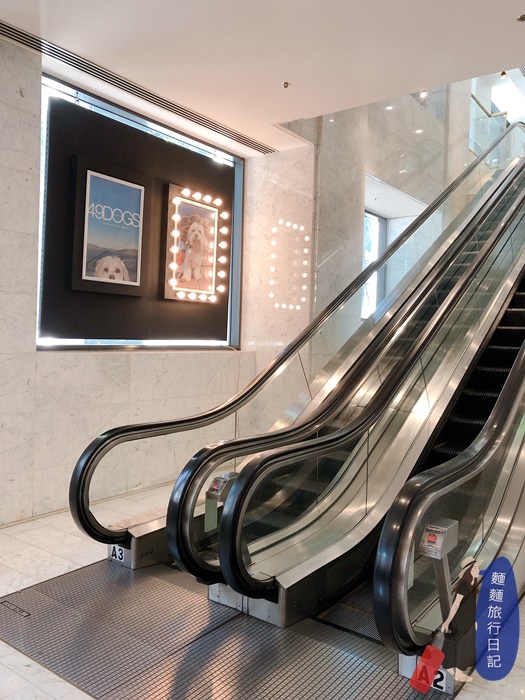 就連手扶梯旁邊牆面也設計得很像百貨公司旁邊的廣告牆一樣,那隻狗狗可是酒店的吉祥物喔!酒店裡到處都是牠可愛的蹤跡。