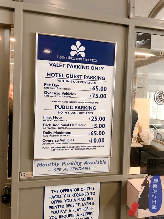 你們看看這個泊車價錢,一晚65美金真的是要吐血了!貴傷森~