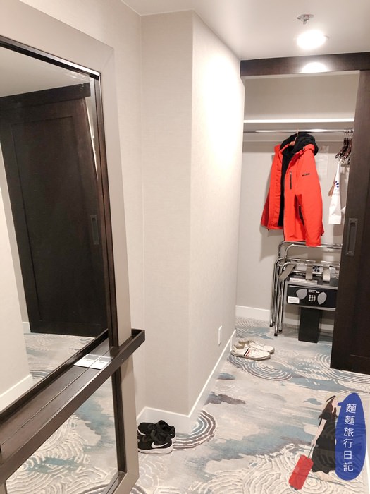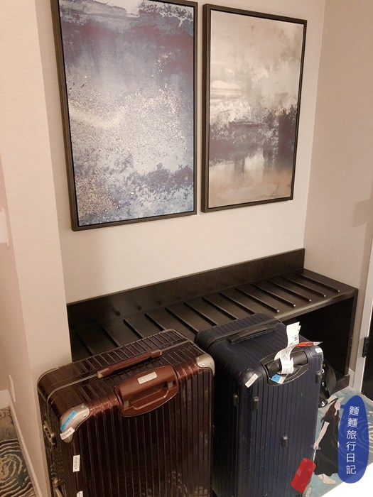 我滿喜歡美國酒店房型玄關空間都很大,玄關空間可以擺我們的行李廂跟一台推車。