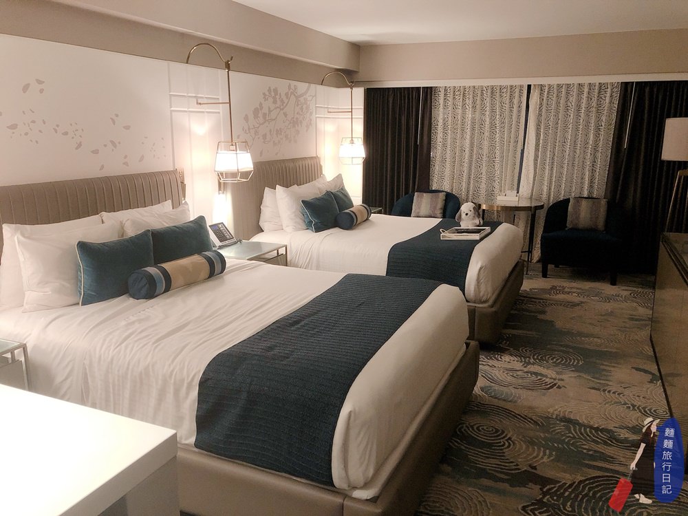 進來之後房間裡面有兩張大尺寸雙人床,美國的床真的都超級舒服超級好睡,我們兩大兩小住的超級舒服,最懷念美國的床了。