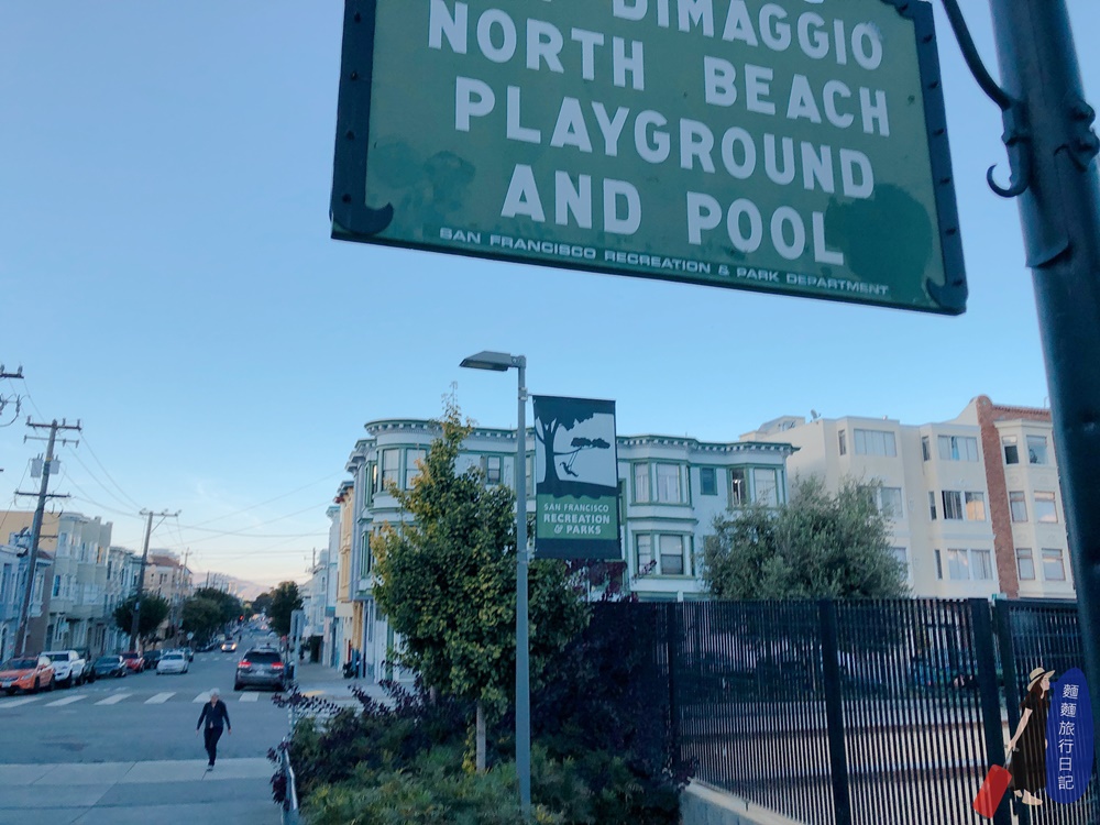 舊金山的小義大利區這裡有很多好吃的餐廳、看起來氣氛很好的餐酒館,但是我們今天除了要找一間環境好又好吃的餐廳用餐外,最主要的目地就是我們要來小義大利區的Joe DiMaggio Playground放風小孩啦~~~