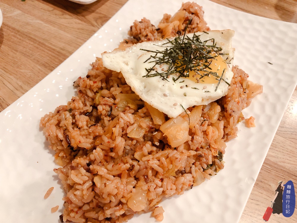 泡菜炒飯也是用紫米欸,上面放了一顆太陽蛋,微辣拌入蛋黃一定超好吃,但是這顆太陽蛋被波仔跟樂樂分食掉了,哈哈哈XDDD