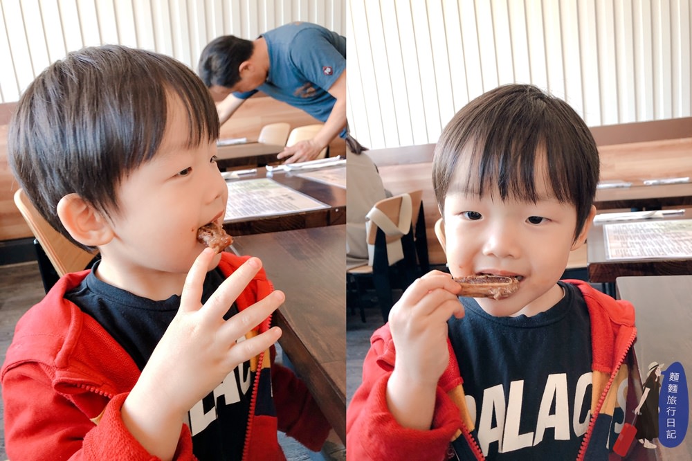 讓挑嘴的波仔為您試啃牛肋排,嗯嘛嗯嘛~左啃右啃、再吸允一下骨頭上的燒烤醬汁,太好吃啦~波仔吃完給我一個媽咪這超級好吃的眼神!