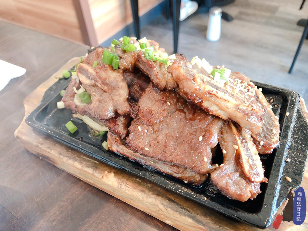 我們還點了BBQ牛肋條,看看這罪惡的肉肉們被堆在鐵板上的好吃模樣,喔莫喔莫~