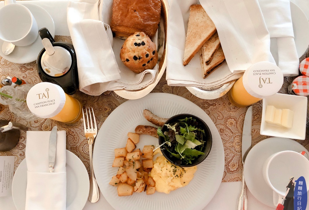 美國舊金山親子必住飯店泰姬陵坎普頓廣場酒店Taj Campton Place,泰姬酒店是一家豪華酒店連鎖店,在印度有84家,其他國家16家,包括不丹、馬來西亞、馬爾代夫、尼泊爾、南非、斯里蘭卡、阿聯酋、英國、美國和讚比亞,總共經營100家酒店和度假村,美國舊金山的泰姬陵坎普頓廣場酒店位在舊金山市區,酒店的歷史悠久,鄰近著名景點聯合廣場Union Square超近,步行即可到達,酒店內設有二星級的餐廳、酒吧與頂樓24小時開放的健身房,房間是現代簡約風格,提供24小時的客房服務,可以在房內享受Spa服務、就連早餐也是用點的,直接送餐到你房間,舒服地躺在床上即可吃早餐!是不是好棒棒~