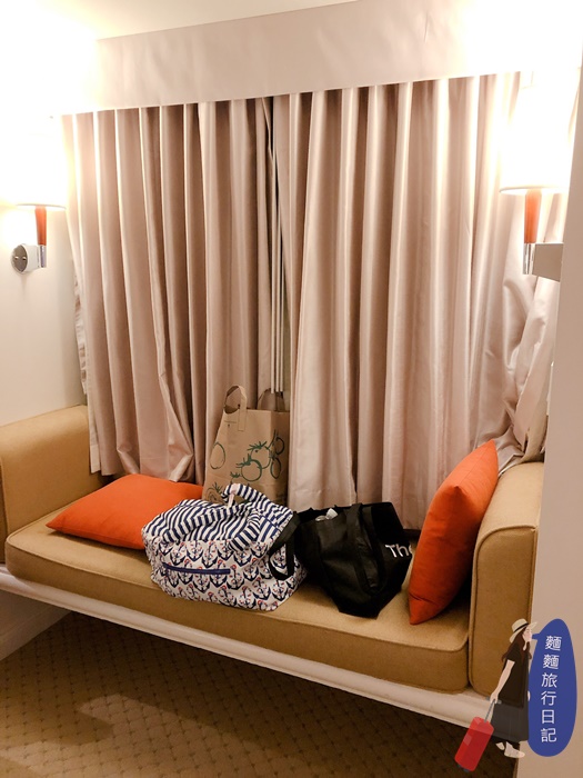 窗邊還有懶人沙發椅設計,打開窗簾就是舊金山的市景了,ㄊㄟ在這裡划手機很舒適欸!