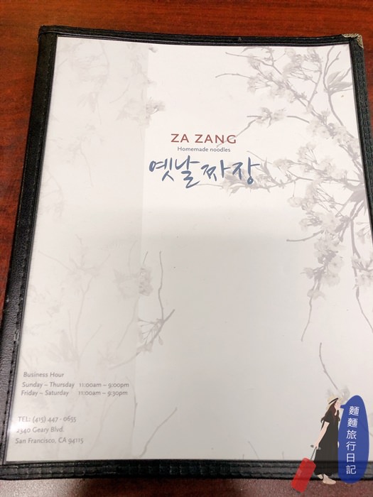 ZA ZANG 是韓國的中餐廳,通常在韓國一般的韓國料理店不會賣炸醬麵,想要吃炸醬麵就要到韓國的中式餐廳才能吃到,這間餐廳在舊金山日本城附近,餐廳沒有停車場,在舊金山真的是寸土寸金,只好路邊停車囉!偷偷抱怨舊金山的停車費也是貴死人,這間店超小一間,店裡應該只有5桌,牆上貼滿有照片的菜單,看起來就很好吃!