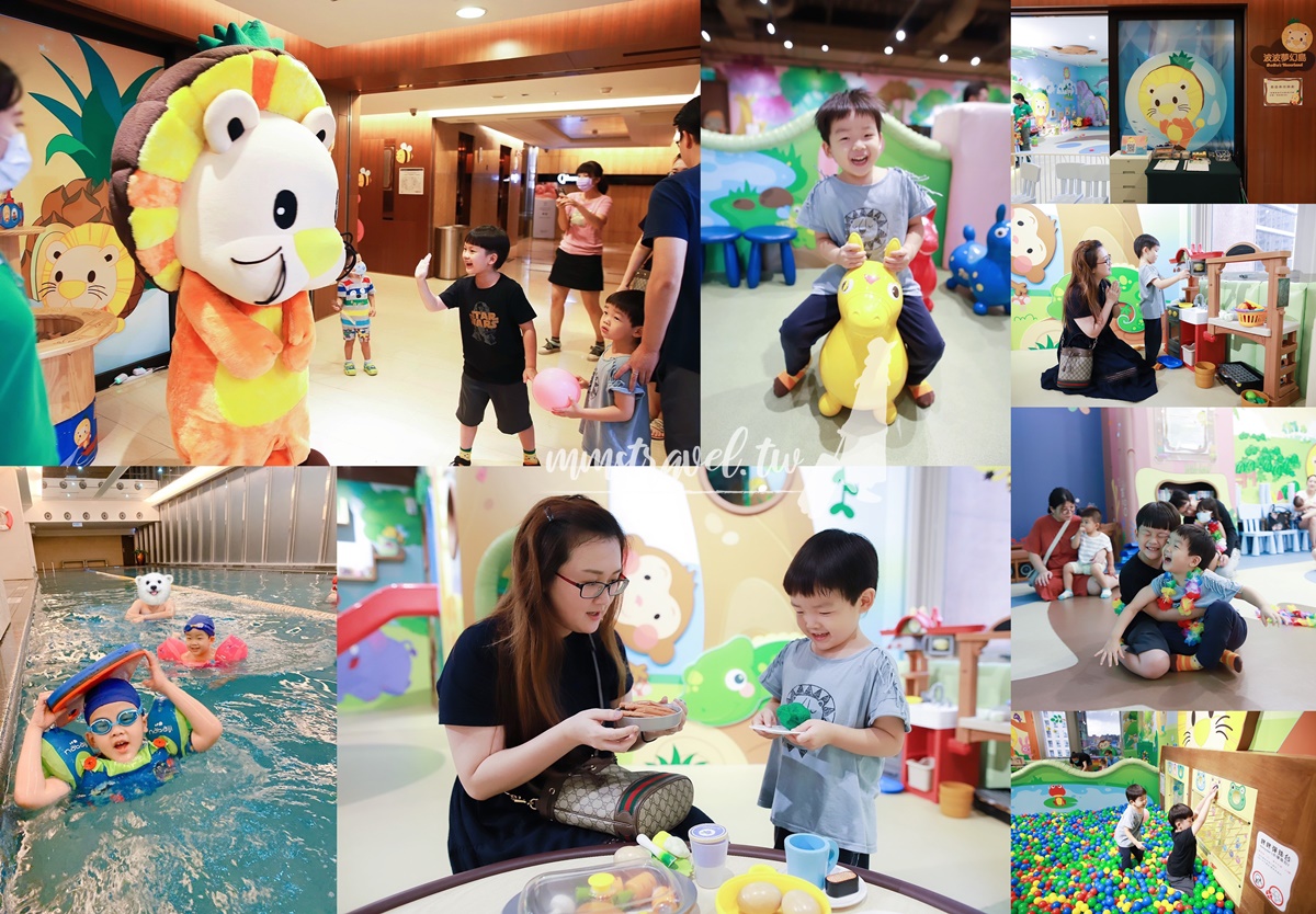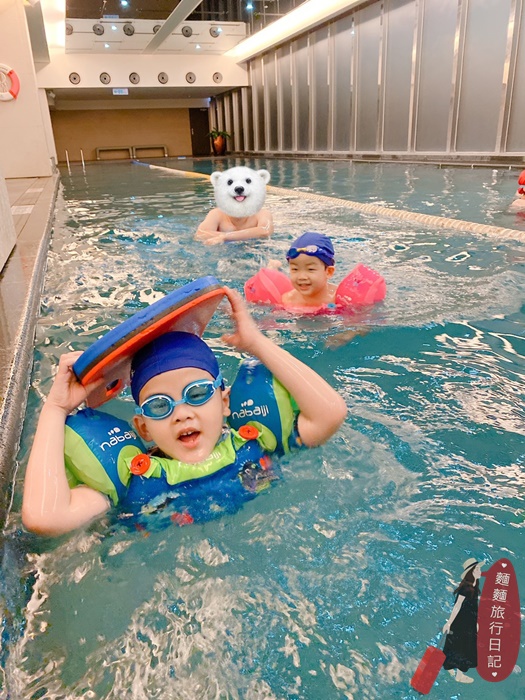 遊戲室後又把兩隻屁孩放進水裡游泳~~~今天暑假雖然無法帶他們去海島國家旅行,但是在台灣各大飯店的泳池也玩水玩得很開心,夠本了!