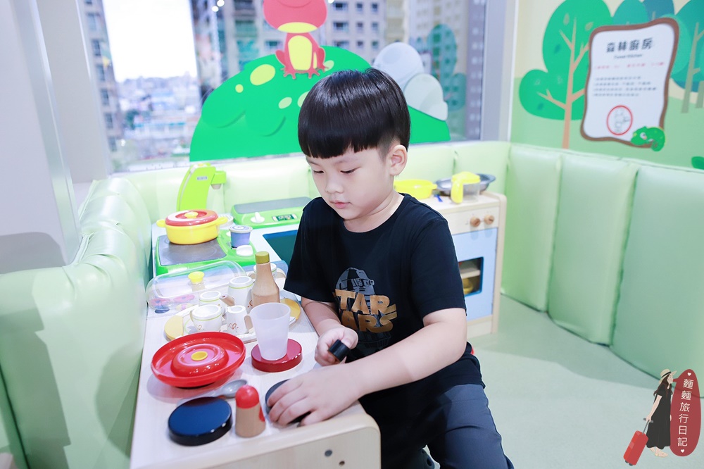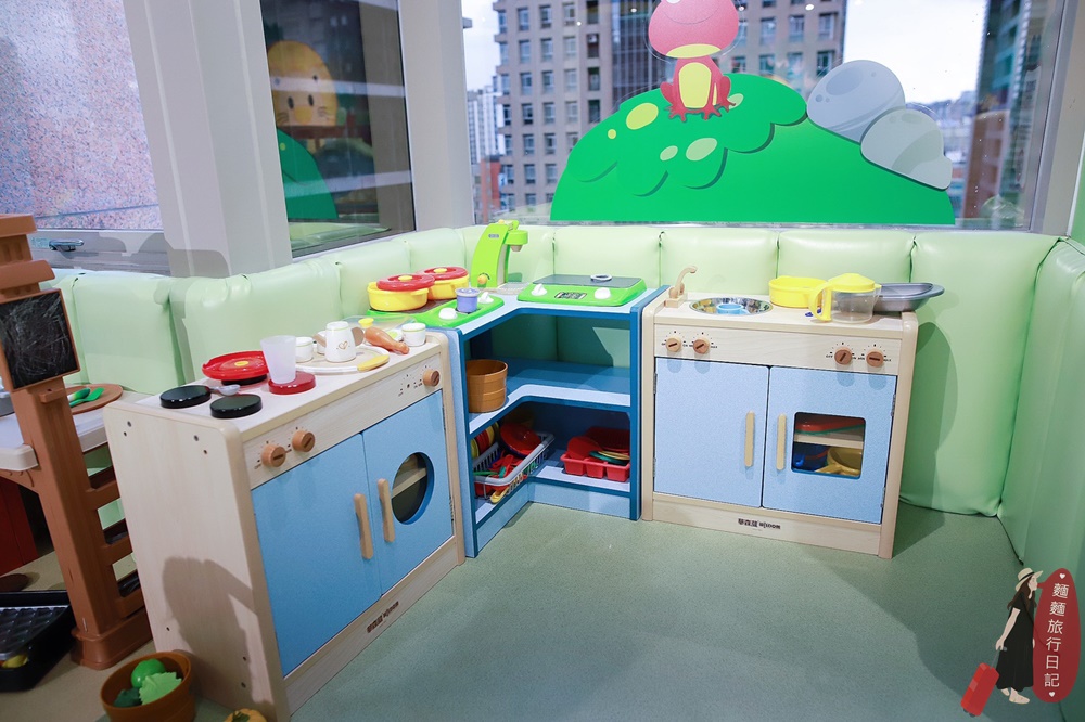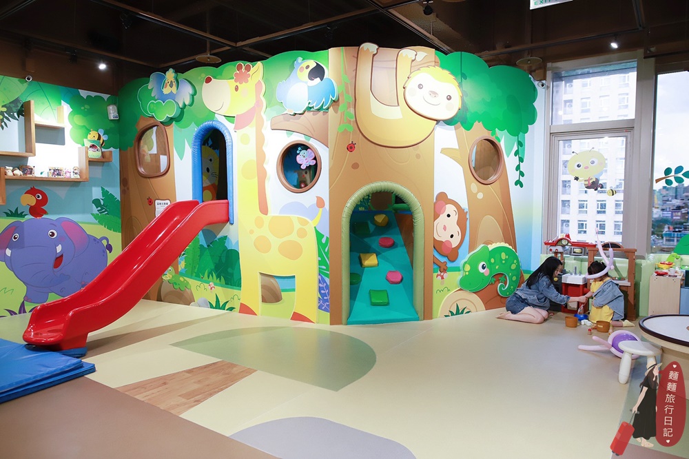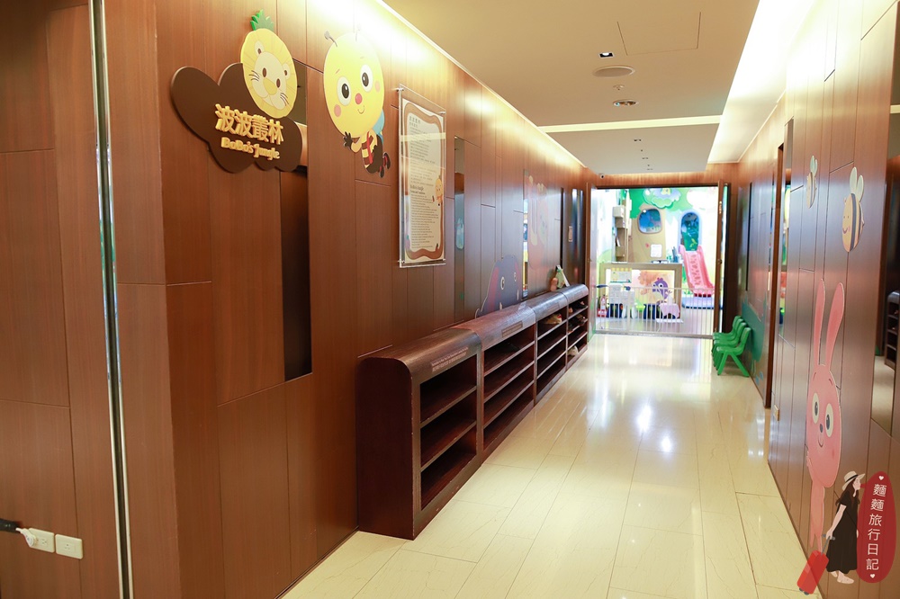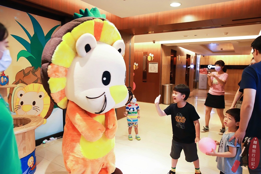 新竹喜來登特別邀請騎士堡兒童育成中心聯手打造孩子的造夢場所,全區符合SGS認證標準打造,也是全台第一間取得SGS安全認證飯店遊戲室,並融合飯店吉祥物─鳳梨獅「喜波波」及叢林風主題,不管是大人小孩進到遊戲室都要穿襪子唷~