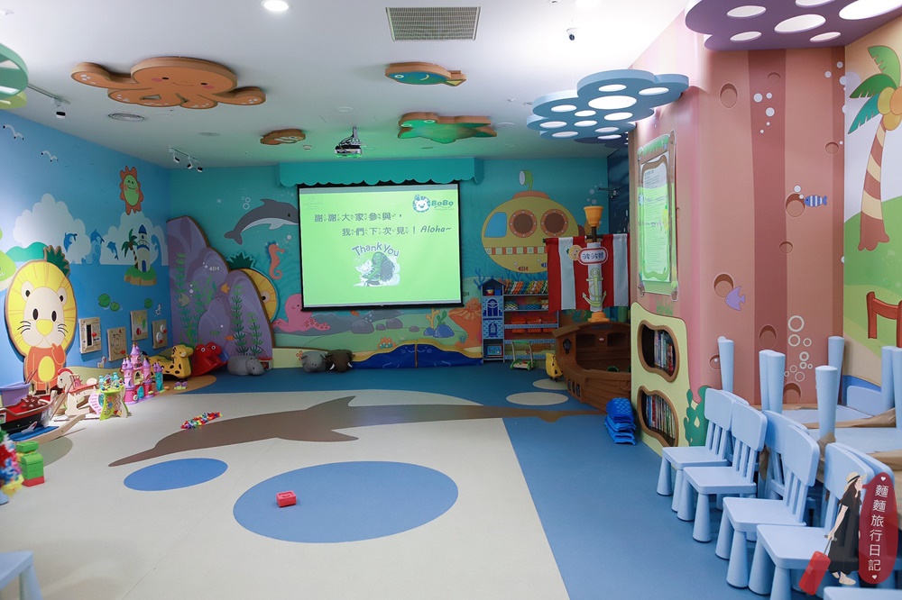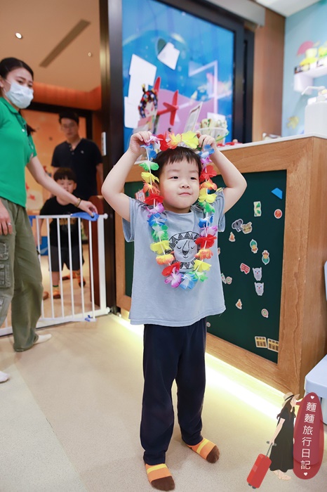 6樓以下全是飯店的公共設施,有兒童遊戲室喜波波樂園、恆溫游泳池、健身房、三溫暖等,波仔跟樂樂在遊戲室巧遇喜波波超級開心,還學了夏威夷舞耶~