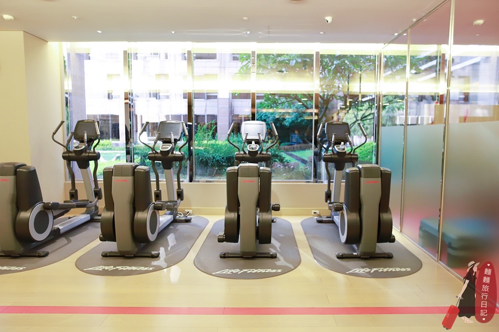 大人可以使用的公共設施有三溫暖、健身房,健身房還滿大的欸!