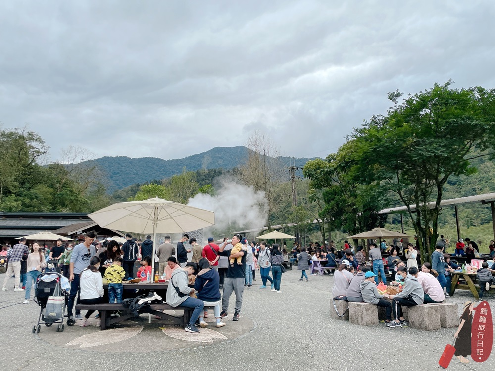 清水地熱的座位區不多喔!我們也是跟其他人併桌使用餐桌,大家也可以自備椅子,很多人直接在草皮上野餐。
