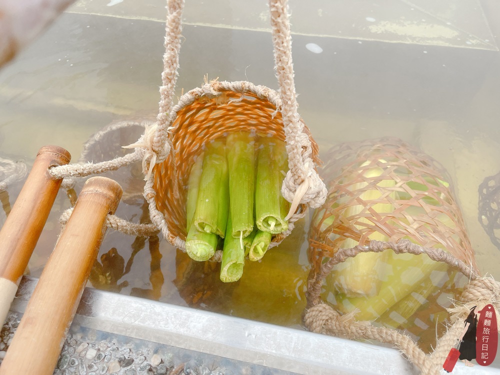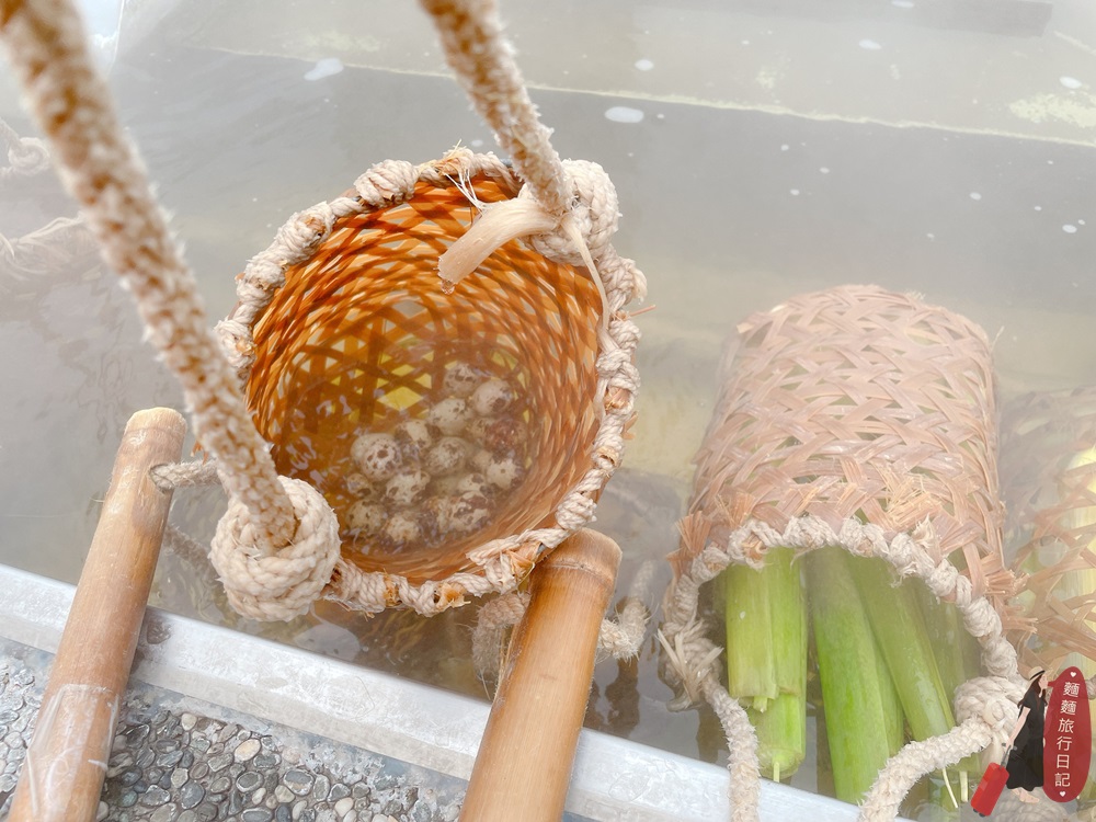 雖然煮食區的池子有很多個,但是人也很多,幾乎每個池子都被人群包圍!食物排排站放在池子裡被煮好療癒呀~竹簍上都有編號,怕忘記哪個是自己的話可以拍下竹簍編號喔!