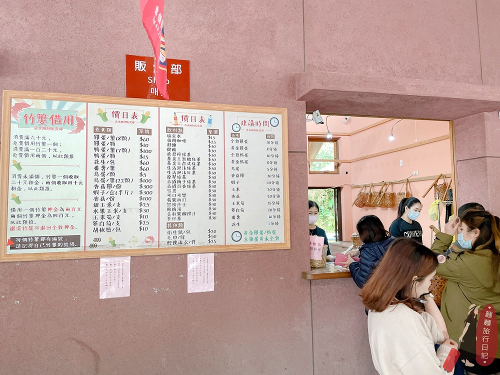 價目表上清楚表示每種品項的價錢!除了食材跟租借竹簍外也有販售飲料、衛生紙、毛巾、輕便雨衣!