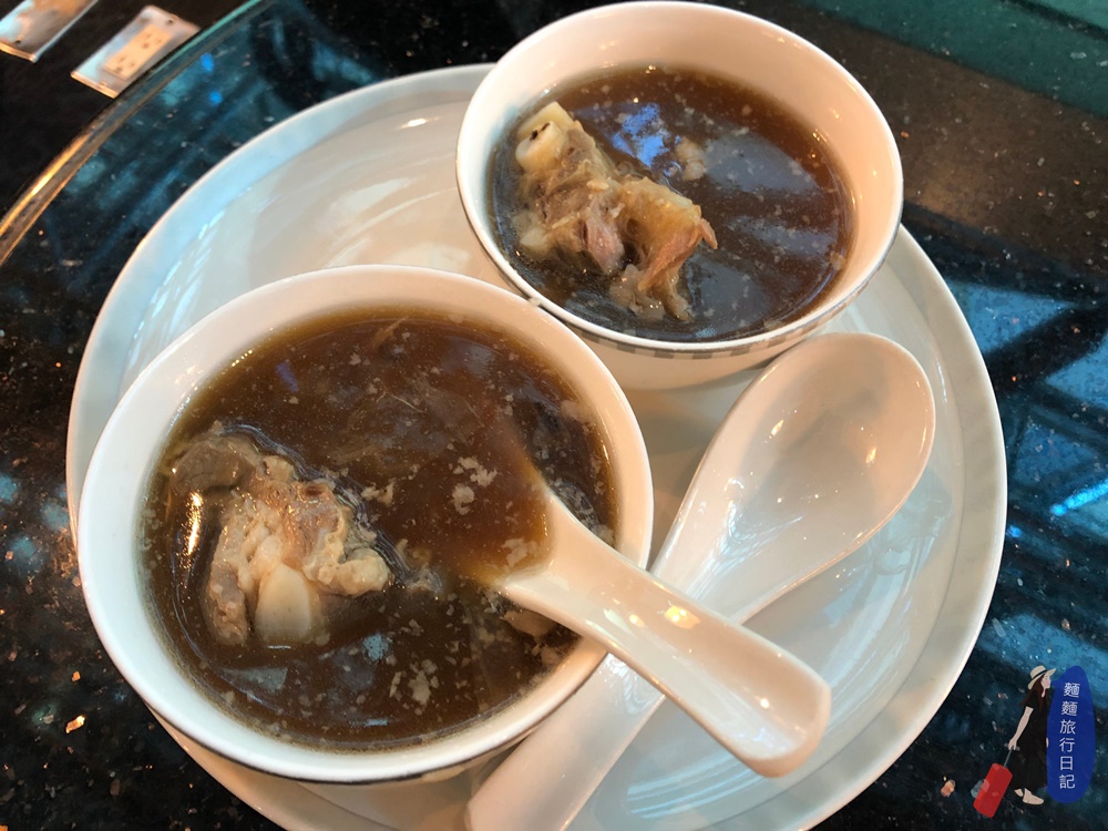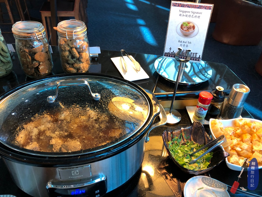 重頭戲是這碗肉骨茶湯啊!這碗肉骨茶跟我去新加坡喝的母港款捏~新加坡的肉骨茶比較清澈啊!胡椒味很重!但是新加坡航空貴賓室的肉骨茶感覺是用中藥熬出來的那種,顏色比較深!也沒啥胡椒味,但有中藥香味,愛藥膳的會喜歡這碗肉骨茶,排骨肉已經燉的非常軟嫩,可以骨肉分離,雖然不是我所期待的胡椒味很重的新加坡式肉骨茶,但是也是滿好喝的唷~