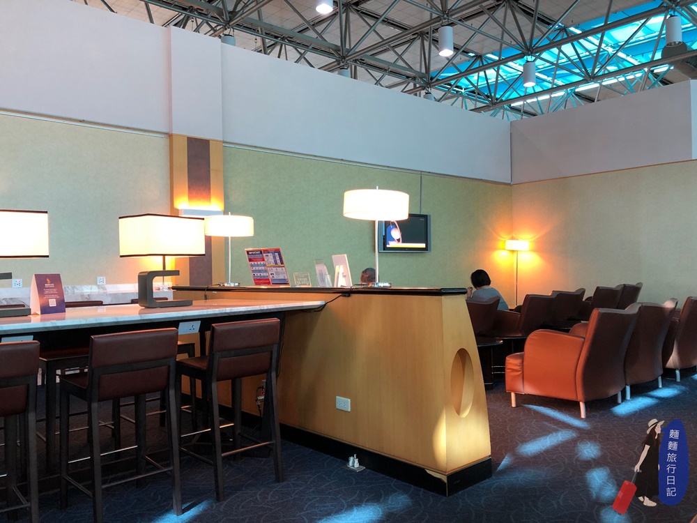 新航貴賓室一眼能望盡,空間是狹長型,雖然不大,但是有很多休息的沙發椅區,而且人超極少,很安靜舒服!大家不想要去人太多的貴賓室,來這裡很棒啊!有一種秘密基地的感覺。左邊是雙人沙發區,牆上有電視可以看!