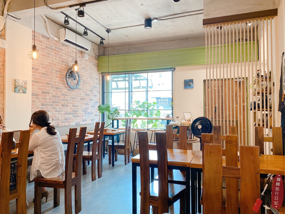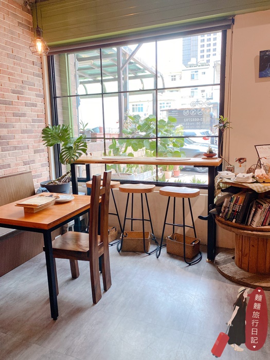 窗前的高腳椅區還有滿滿的綠色植物,好適合在這裡放空啊~這也是老闆取名較慢半拍餐館的原因,希望大家來餐廳能夠慢下來享受美食!