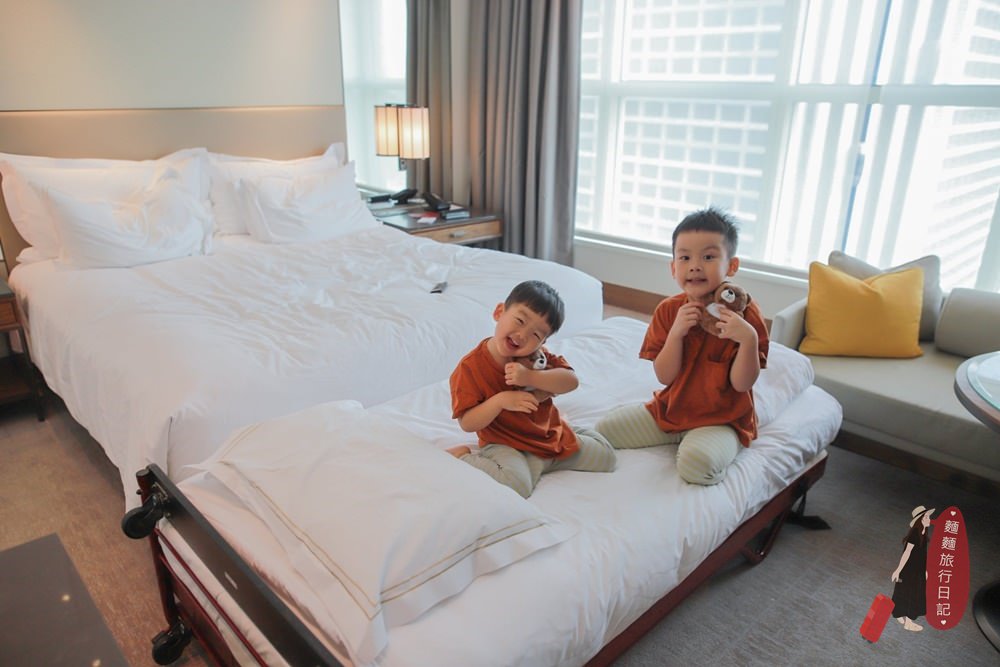 兩寶看到馬上失心瘋啦!抱著Conrad小熊吵著要我幫他們拍照,因為有兩個小孩,所以我有額外再請酒店幫我加一張小床~題外話他們家的床超好睡!!!!